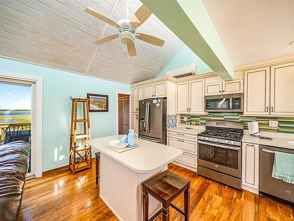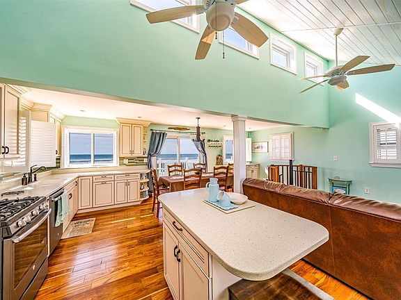 This Whale Beach single family home boasts a reverse living floor plan with sweeping water views of both the Ocean & Bay. On the lower level you will find three bedrooms, sitting room, & den. Heading up to the main living level the custom cabinetry spans the entire North wall providing ample storage and meal preparation space. A quaint island, GE slate appliances, & one of the best views from a sink window complete the kitchen. Adjacent to the kitchen is the focal point of the great room a cathedral shiplap ceiling with a bank of windows flooding the space with natural light. A total of four decks can be found off both floors on the Oceanside & Bayside of the home along with a sizable ground level patio. Additional highlights include: off-street parking for multiple vehicles, maintenance free vinyl siding, composite decking and rails, professionally landscaped grounds, large ground level storage area, shed, & a private outside shower. Property is being sold fully furnished. 2300 Commonwealth is the perfect blend of an Outer Banks-esque location coupled with the charm of the Jersey Shore.