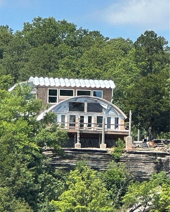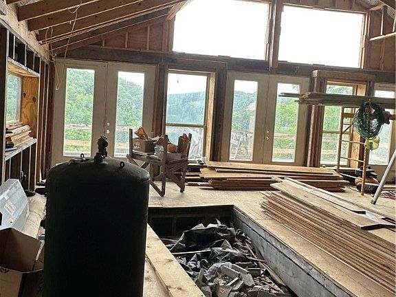 Breathtaking view of Big Clifty Cove at Hogscald. Home sets above the famous "Lover's Leap". Home is unfinished and will not finance. RV can remain with Sale. Conic (barn) Building is for boat storage, needs repairs. This is a one of a kind with big possibilities. Very artistic in design and challenges your creative mind. Once completed this property will increase in value quickly. Sellers are in the process of some cleanup of stored materials. Water is from neighbor's well and sellers to provide a well agreement with sale.