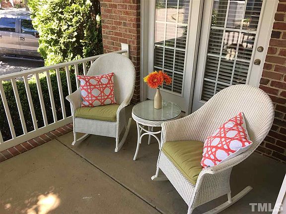 Beautiful end unit with covered front porch and brick patio. 1st floor MSTR and bath. Walk-in closets, MSTR bath has garden tub, separate tile shower. 2-story family rm w/fireplace. Gorgeous hardwood floors throughout most of first floor. Tile in laundry and bathrooms. Carpet in bedrooms. Crown molding. Cherry kitchen cabinets, stainless appliances. New air conditioning upstairs. RDU/RTP/540 close by.