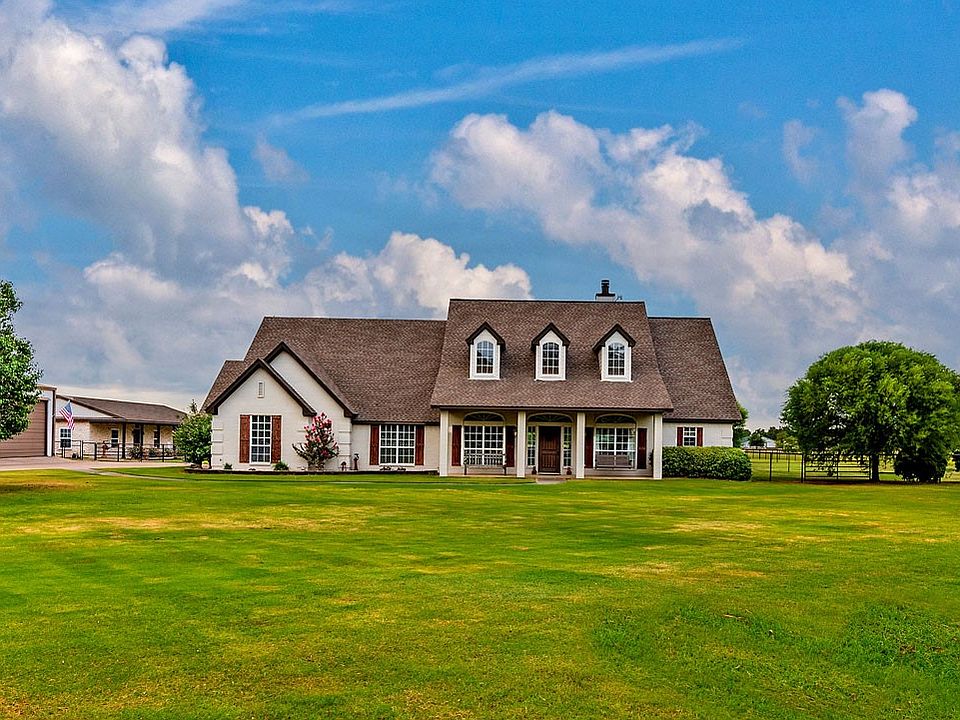 BUYER LOAN FELL THRU BACK ON MARKET! 7 acre HORSE RANCH w 8 STALL BARN, half acre LIT ARENA, 1200sq ft WORKSHOP w ELECTRICITY and RV height, huge POOL, 220sq ft fenced and COVERED CHICKEN coop, amazing SEPERATE 1120 sq ft BUNKHOUSE for guests-READY FOR NEW OWNERS! THE MAIN house at 3264 sq ft has 3 bedrooms, STUDY, FORMAL DINING, HUGE FAMILY ROOM, updated OPEN KITCHEN, BRIGHT breakfast nook, BUTLERS PANTRY with WINE fridge and COOLER, upstairs GAMEROOM! All the upgrades - GRANITE, kitchen ISLAND, WOOD FLOORS, CERAMIC TILE, smooth COOKTOP, SS appliances, ORB lighting, STONE fireplace! The property has a GATED ENTRANCE, STORM SHELTER access from secondary bedroom, huge COVERED BACK PATIO, pool with DIVING BOARD and SUN DECK, PIPE and NO-CLIMB fencing and CROSS FENCING, two 24x12 BARN STALLS and six 12x12 stalls with WASH STATION and TACK ROOM! SEPARATE BUNKHOUSE has 2 beds, 1 bath, FRONT PORCH and 800sq ft of SCREENED in PATIO! Seller may consider selling additional back 10 acres.