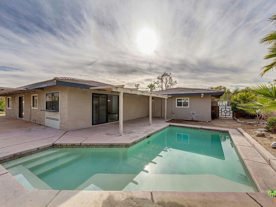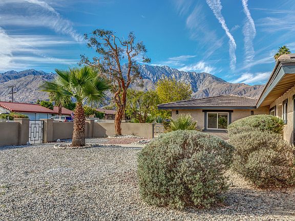 Check out this 3 bed, 2 bath home with modern finishes as well as fresh improvements including interior paint and bedroom carpeting. Located minutes from restaurants and retailers, this home also includes low-maintenance landscaping, private pool with views, and a two car garage. No monthly HOA nor land lease fees either! South-facing living room has mountain views, recessed lighting, tile flooring, and dry bar with built-in beverage refrigerator. The adjacent kitchen, which features granite slab counters, built-in appliances including a gas range, microwave, dishwasher and trash compactor, opens to the west-facing dining area that leads to the private pool. South-facing Master Suite offers views, direct access to the outside, walk-in closet, and a private bath with one sink and walk-in shower. Bedrooms Two and Three each open to the outside and are close to a hallway bathroom that includes a walk-in shower.