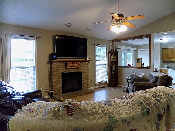 This 3 bedroom/2 full bath ranch features over 1,200 sqft of living space, a detached garage, and is conveniently located to all Kokomo has to offer. As you walk up towards the front door you will notice the fresh landscaping and stamped concrete walkway. The tiled entry opens up to the living room with vaulted ceilings, fireplace, and updated flooring. To the right is a eat-in kitchen which has updated counters, tile backsplash, large pantry, and comes with all appliances. The kitchen opens to the backyard and offers views of the in-ground pool. The master bedroom room features new carpet, a walk-in closet and bathroom with tub/shower combo. Bedrooms 2 and 3 offer new carpet and walk-in closets as well. The backyard offers plenty of room for grilling and lounging. The pool is 3'-6.5' deep and has a 3 year old liner. The detached garage has an overhead door and is big enough for a car and a workshop. It is plumbed for a bathroom and could be easily converted to a pool house. Come see all this home has to offer! Other features include: totally repainted interior, 3 year old roof, water heater < 5 yrs old, natural gas plumbing for grill on back deck, drain in detached garage