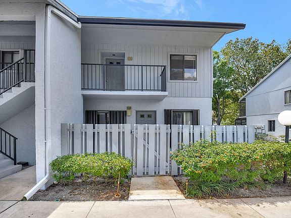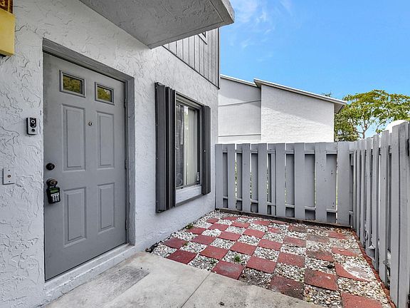 Great floor plan, great location! Original owners estate is selling this 2 bedroom, 2 bath first floor condo. No age restriction and zoned for great public schools! Huge 19x9 front fenced patio plus storage closet. Also has a 13x8 covered, screened porch in back that looks out on a large green space. Big walk in closet in the primary bedroom plus full bath with a step in shower. Long term tenant just moved out to accommodate the sale. Some TLC/handyman updates could make this place a dream! Pet friendly neighborhood! Hurricane ready with complete accordion shutters for piece of mind and easy storm prep! Heated community pool. Very quiet area and only 1/2 mile to I-95!