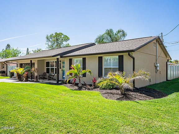 Discover modern elegance and move-in-ready perfection in this beautifully remodeled 3-bedroom, 2-bathroom home nestled in the heart of South Daytona. With 1,334 sq. ft. of stylish living space, a sparkling pool, and a fully fenced backyard, this home offers the perfect blend of comfort, functionality, and contemporary design. No detail was overlooked in this extensive renovation, ensuring a home that is both aesthetically stunning and meticulously maintained. Every inch has been updated, upgraded, and refined. The kitchen has undergone a full remodel, featuring modern appliances, custom cabinetry, and sleek finishes. Both bathrooms have been tastefully renovated with new vanities, fixtures, and stylish tilework. Throughout the home, plantation shutters, matte black door hardware, and custom trim and baseboards add a touch of sophistication. Freshly painted inside and out, the home boasts enhanced curb appeal with new stucco, exterior window shutters, and updated front porch posts. All interior and exterior doors have been replaced, including new French doors and a storm door. The laundry room has been thoughtfully upgraded with a new sink, built-in cabinetry, and charming shiplap accents. Energy efficiency and natural light are maximized with updated windows installed throughout the home. Major upgrades include a new roof, newly installed gutters, and soffit enhancements for long-term durability. The pool has been resurfaced, and a brand-new pump system ensures seamless enjoyment of this backyard oasis. A vinyl privacy fence encloses the lush backyard retreat, offering the perfect setting for outdoor relaxation and entertaining. The garage has also been upgraded with a new door and a side-mount WiFi opener. Additional modern conveniences include an upgraded HVAC system, a tankless water heater, and a whole-home generator transfer switch. Step outside to your private backyard escape, where the inviting pool and expansive patio provide an ideal space for gatherings. Inside, the open and inviting layout is bathed in natural light, further enhanced by custom plantation shutters and stylish finishes throughout. Conveniently located near shopping, dining, parks, and top-rated schools, this South Daytona home is the epitome of modern Florida living. This home is truly one of a kind, offering a seamless blend of elegance, functionality, and high-end upgrades. Move-in ready with no projects left to doschedule your private tour today!