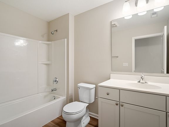 The Reilly plan has three bedrooms, two and a half baths and a two-car garage. This Brownstone-style home has garage entry at the back and an inviting porch on the front entry. The open-concept living room, kitchen and dining room are on the main level. The upper level has three bedrooms, including two baths and a laundry room. The lower level can be partially finished to add an additional family room and bath. All lower level finish options are available.
