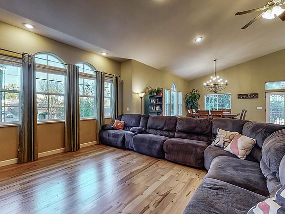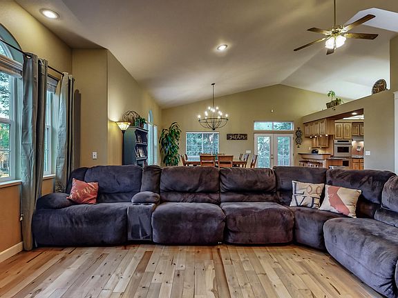 Gorgeous Custom home on 2.75 acres minutes from town, hospitals and services! This private estate features, 3-4 bedrooms, 3 full baths, 2952 Sq. Ft., Flex Floor Plan and radiant heat, living room with wood floors, gas fireplace, skylights, cathedral ceilings. large open formal dining room with French doors to covered deck, well appointed kitchen with extensive cabinetry, stainless steel appliances, 5 burner gas range, double ovens, Corian counter tops, breakfast bar. Master Suite with slider to covered deck and views of lush grounds, gas fireplace, walk-in closet, master bath with jacuzzi tub, tile floors and walk in shower. Downstairs features a large recreation room that could serve as 4th bedroom or In law suite and offers a wet bar, wood stove on rock heart, a full bath and
