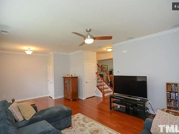 Discover your ideal rental home in the charming Kitts Creek neighborhood! This beautifully appointed end-unit townhouse features 3 bedrooms, 2.5 baths, and a 2-car garage. You'll be captivated by its prime location and inviting porch with a backyard. Inside, enjoy high-quality upgrades like hardwood floors, wrought iron stair railings, an extended dining area, a master bedroom with a tray ceiling, granite countertops, stainless steel appliances, 42" cabinets, and a gas range. To top it off, the home includes a surround sound system, remote-controlled fans, and comes with a stainless steel fridge, washer, and dryer! Located just minutes from Research Triangle Park and surrounded by excellent schools, this home is perfect for families and professionals alike. The Kitts Creek community offers an array of amenities, including a pool, dog park, clubhouse, gym, tennis court, community garden, gazebo, playground, and library. Don't miss out on this exceptional rental opportunity! Renter pays for electricity, gas, water & sewer. No smoking inside the house.