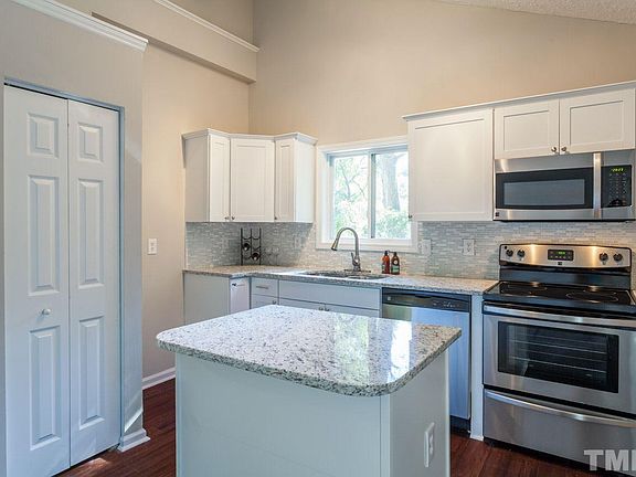 Features a custom designer kitchen with NEW Shaker cabinets, granite counter tops, tile back splash & stainless steel appliances. New EXOTIC 5 inch Bamboo hand scraped hardwood flooring; NEW plush carpet & designer paint. Bathrooms have beautiful tile showers & granite. Lower level has private bedroom & bath with its own entrance perfect for teenager or in law. Private back yard with HUGE deck! Convenient to Downtown Raleigh & 440. Move in & enjoy!