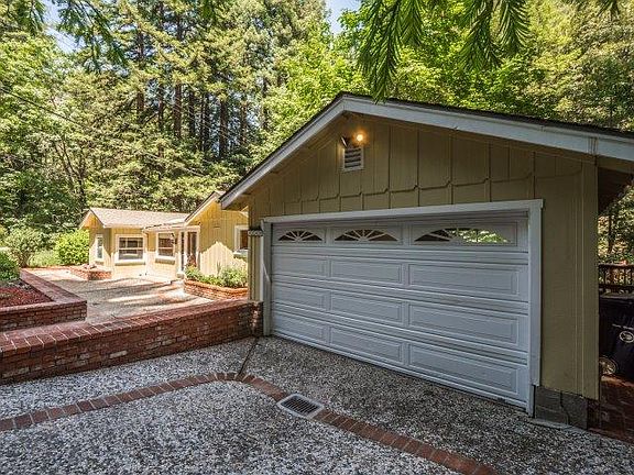 This charming home is situated on a large sunny lot surrounded by beautiful redwoods. It has end-of-road privacy in a peaceful setting beside a tranquil creek. When you enter the spacious living room, there is brand new carpeting, a cozy fireplace, vaulted ceilings and multiple skylights providing warm natural light. The quaint kitchen has knotty pine cabinets & walls, plus an adorable dining area that leads to the rear deck where you can sit and listen to the trickle of the creek. The master bedroom has his-n-hers closets and master bath has a double vanity and stall shower. The hall bath has a vintage claw foot tub and wainscoting. The yard has extensive hardscapes and brickwork which provide an inviting space for outside entertaining, plus plenty of off-street parking for your guests. This property is ideal for anyone who loves nature and still wants to be near area amenities... minutes to hiking trails, shopping, restaurants, theater and award winning Scotts Valley Schools!