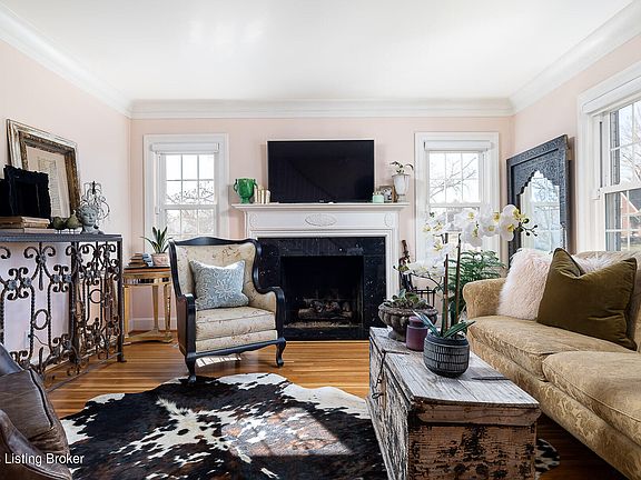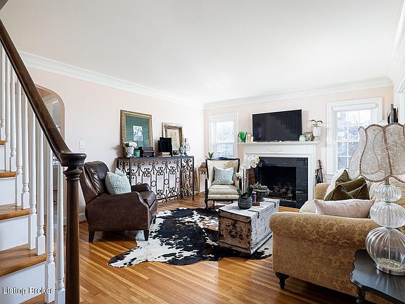 Featuring timeless charm in an exceptionally convenient area, this updated Cape Cod is located just minutes from the gorgeous grounds of Cherokee and Seneca Parks, as well as the countless amenities, restaurants, and businesses of Bardstown Rd. Nestled on a spacious corner lot in desirable Wellington, this classic home has been thoughtfully updated to combine modern amenity with traditional style, offering buyers a quintessential Highlands experience without compromising on quality or style. Arched doorways, well-maintained hardwood floors, and classic curb appeal accentuate the home's original character, while the updated kitchen, fresh paint throughout, designer blinds, new lighting, and increased home security add a sought-after modern finish to the home. From a new Nest thermostat to the completely fenced-in backyard, the home is truly move-in ready! Past an inviting covered front porch, guests will enjoy spending time in the bright living room with fireplace and sleek hardwood floors before continuing into the spacious windowed dining room with crown molding and elegant ceiling medallion. The completely remodeled kitchen (2017) features quartz countertops, floor-to-ceiling cabinetry, stainless steel appliances, and designer backsplash, as well as access to the home's fenced backyard and oversized 2-car garage with covered side porch. The first floor is complete with a corner bedroom (currently used as a home office) and chic full bath. The second floor features two gracious bedrooms with exposed beam ceiling, ample closet space, and shared oversize full bath. The finished lower level with exterior access is perfect for a family room or guest bedroom suite, with living space, dining area, and built-in wet bar. Additional unfinished storage with laundry completes the floor. Offering homeowners a private retreat, the home's exterior features a manicured, fenced backyard with mature trees and spacious 2-car garage with covered porch and convenient off-street parking. A rare price point for the bustling Highlands area, this home is not to be missed!
