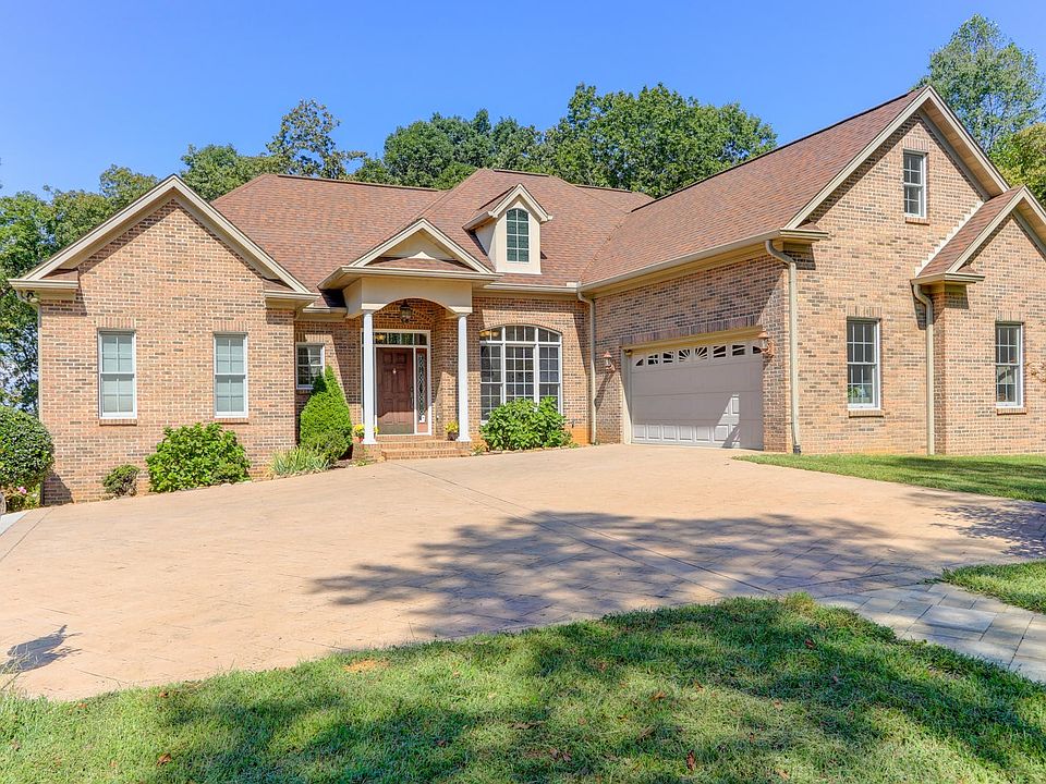 ALL-BRICK LUXURY HOME ON ALMOST 5 ACRES! With the perfect blend of comfort, tasteful design and unsurpassed quality, this Frank Betz designed 2-story basement home offers a spacious floor plan, a main level master suite, a finished walk-out basement and a guest/in-law suite upstairs. Enjoy the bright open living area with 14-ft ceilings, beautiful custom windows & gleaming hardwood floors, an open kitchen with Corian counter tops, center island/bar & custom cabinetry, the luxury master suite with a trey ceiling, large walk-in closet & elegant master bathroom. The basement includes a huge rec room, 2 additional bedrooms/offices and a heated & cooled workshop. Relax on the private back deck or covered basement patio that overlook the peaceful setting and provide serene views of the lake.