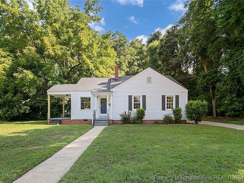 Charming 3 bedroom / 2 bathroom Haymount house with beautiful hardwood floors, tile in the bathrooms and new LVT in the kitchen. Large walk-in tile shower in the master bathroom and granite vanity. Spacious living room with fireplace and adjacent covered porch that makes a great outdoor sitting area. Lots of cabinet and counter space in the kitchen and open to the dining area. Large fenced backyard. Convenient location near Terry Sanford High School.
