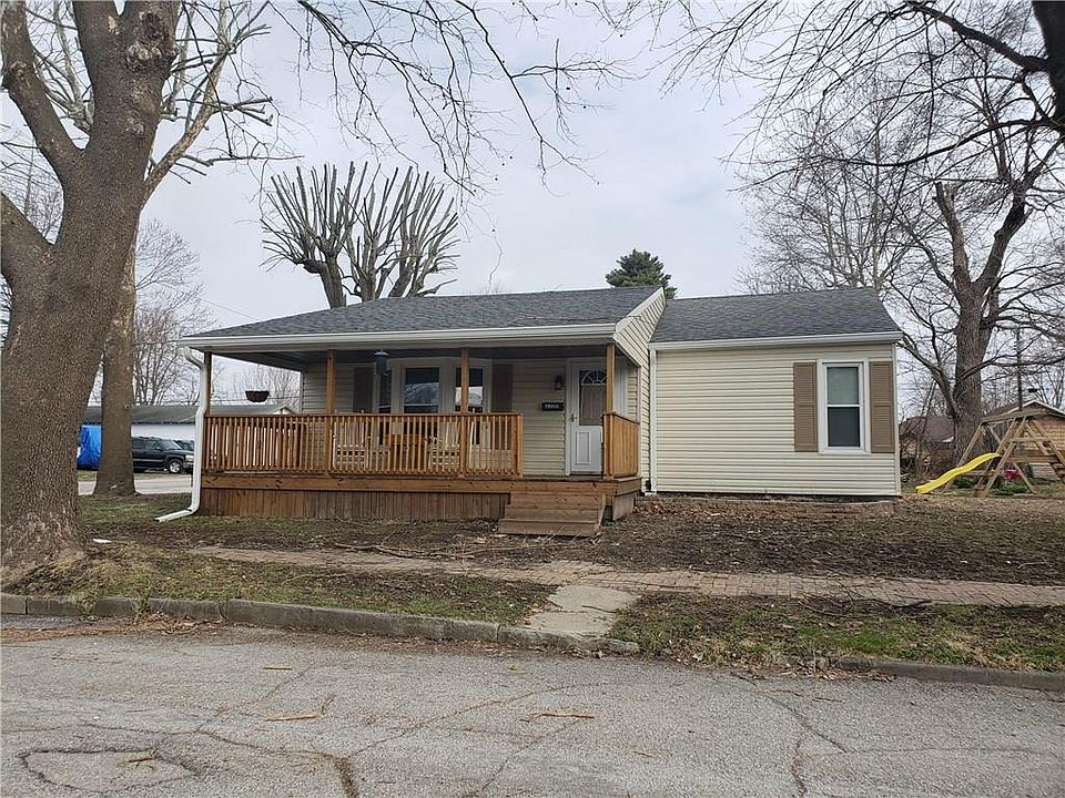 This Bungalow home sits on a corner lot and has been updated with an open concept layout. Home is move in ready with lots of kitchen cabinets, center island with bar area, and kitchen appliances stay with the home. Nice size laundry area/utility room, new covered front porch and wood deck on the back. New heat pump, 200-amp service. 2 car detached garage that is heated and has lots of parking space.