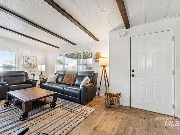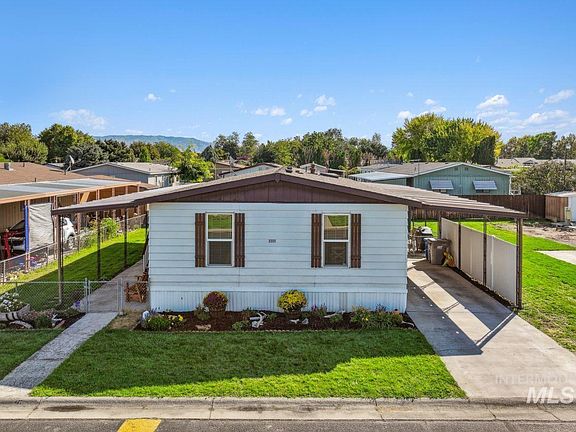 Beautifully Remodeled Home in 55+ Sunflower Park Boise community. Move right in and enjoy this thoughtfully updated manufactured home on a spacious rented lot in the quiet Sunflower Park community. Inside, you’ll love the brand-new LVP flooring throughout, a remodeled kitchen featuring newer stainless steel appliances (gas range/oven, microwave, refrigerator), a new sink, and butcher block countertops. The spacious primary suite offers an ensuite bath, while both bathrooms include tub/shower combos with upgraded tile surrounds—plus a skylight in the guest bath for added natural light. Relax outdoors with covered patio areas on both sides of the home and take advantage of the large lot space with community-provided irrigation. Additional features include a covered carport, two storage sheds, and included washer, dryer, & refrigerator. This home offers low-maintenance living in a welcoming 55+ neighborhood with a peaceful setting close to amenities. There is a small clubhouse & RV parking if available.