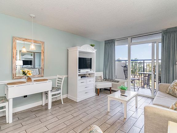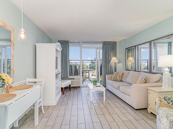 This is a first floor, direct oceanfront 1-bedroom/1-bathroom condominium, located in the sought-after and centrally-located Boardwalk Beach Resort. This well-maintained unit has a private balcony that looks out onto the resort's beautiful oceanfront lazy river and the sparkling Atlantic Ocean just beyond - a magnificent view both day and night.  This condo features tile flooring and plenty of space including two double beds, a Murphy bed, a well-equipped kitchen and an expansive living area. This fully-furnished and stylishly decorated unit would make a fantastic investment opportunity, vacation spot, or even residence.  Boardwalk Resort offers an array of amenities including indoor/outdoor pools, a lazy river, hot tubs, sauna, a fitness center, laundry facilities, and a spacious lounge area. Boardwalk is located in the heart of Myrtle Beach and in close proximity to all of the dining, shopping, and area attractions of the Grand Strand.
