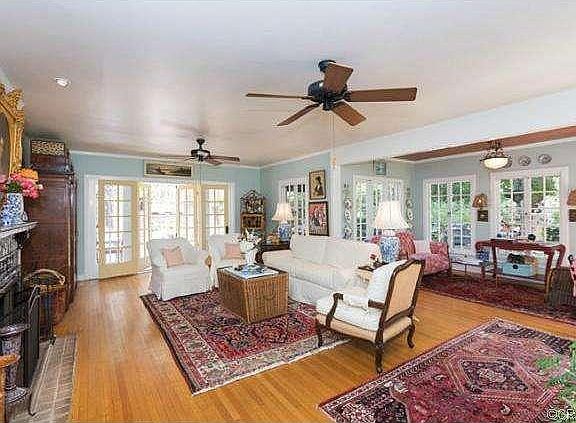 European Country Home in Floral Park. When you enter the antique gate of this private, secluded property, you are greeted by lush landscaping and gardens. This stately and handsome home, built in 1924, is accentuated by water features and an abundance of opportunities for outdoor entertainment and peaceful reflection. French doors and windows, open and airy with lots of sunlight, original wood floors and engineered wood floors, wainscoting, crown molding, plus hand-painted accent trim. Formal Living Room has a great room feeling with vintage detail throughout, including gracious fireplace and French windows. Formal Dining Room with wall of windows and incredible chandelier. Family room adjoins the full bath downstairs. Office off the Family Room opens to the side yard. Huge Laundry Room. Beautifully updated Kitchen with Marble Countertops, stainless steel dishwasher, oven, gas cooktop. 3 spacious bedrooms upstairs including Master Suite. Potential 4th bedroom downstairs. 3.5 charming, vintage-type tiled baths. Master Suite features shaped ceilings and alcove. Master Bath is oversized and has two pedestal sinks and a separate shower and tub. 2 additional Bedrooms upstairs plus a bath and a half. Nearly 3,000 square feet home on 10,150 square foot lot.
