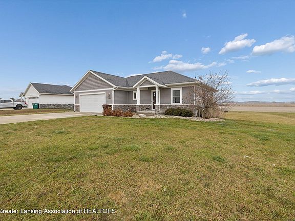 Welcome to 2300 N. Watson Road! A beautifully maintained and loved 5 bedroom, 3 full bathroom ranch style home is set on 1.22 acres in a peaceful country setting within the St. Johns School District. Enjoy open and relaxing views from both your front porch and back deck. As you walk through the front door, you are greeted into an open concept floor plan and cathedral ceilings. The kitchen includes white cabinets, ample countertop space for cooking and entertaining, glass tile backsplash, black stainless-steel appliances that stay with the home, and hardwood floors that extend through the dining room and living room. The living room features a large sliding glass door that opens to the back deck and expansive backyard. The newly purchased hot tub stays with the home! The main floor also has a full bathroom, a finished 2.5 attached garage, two bedrooms, and the primary suite. The spacious primary bedroom is a dream! With a large walk-in closet with custom-built shelves and the first-floor washer and dryer. Plus, the ensuite bathroom with a tiled walk-in shower and dual sink vanity. Heading to the finished lower level is a large L-shaped rec room space, two additional bedrooms, and the third full bathroom, along with storage in both the utility room and garage. Don't miss the fresh paint throughout and new carpet! This house is truly a must-see home! Call today to schedule your private showing!