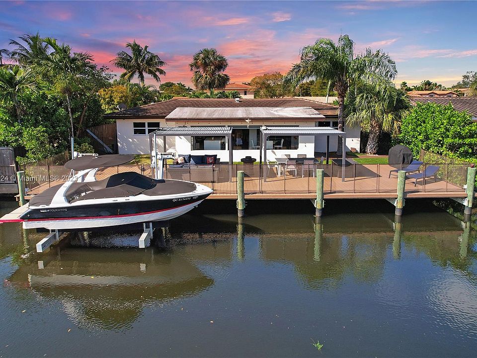 Contemporary waterfront living in Wilton Manors awaits you in this exquisite three-bedroom two bath home. Completely remodeled in 2018 and move in ready.Open concept revolving around the custom kitchen with Miele high end appliances ovens, cooktop, warming drawer, refrigerator, freezer and 2 dishwashers. Blue custom cabinetry has waterfall edges quartz countertops. Wood and Italian porcelain flooring.The bar features a built in Miele coffee machine with a 70 bottle wine cellar. LED recessed lighting throughout the house. Newer washer and dryer, impact windows beside the slidering doors leading to a large wood dock with a boat lift, Outdoor lighting with TV outlet is perfect for entertaining. The garage features an independent A/C system and recessed lighting.