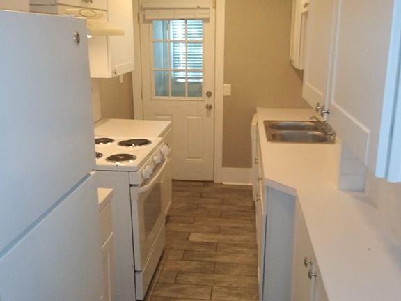 Duplex features off street parking, dining space, dishwasher, hardwood floors and a laundry room. Rent includes water and lawn care.
