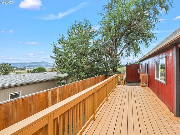 1440 sq ft 3 bed 2 bath home on large lot in Country Mobile Estates, just south of Gaston. Enjoy the views of wetlands and rolling hills from large front deck. Open floor plan with updated kitchen, pantry, SS appliances with built in microwave. Updated bathrooms, paint and flooring throughout. Large primary bedroom with ensuite newly updated bathroom with roll in shower. 2nd and 3rd bedrooms both have new paint and carpet, 2nd bath recently updated. Fenced back yard with sheds, backs to large open field. Large deck in front yard, ample parking. Not far from downtown Gaston, post office, restaurants, grocery and Hagg Lake. Park Rules & Regulations and Park Application available from Park manager upon request. Sale subject to park application approval.