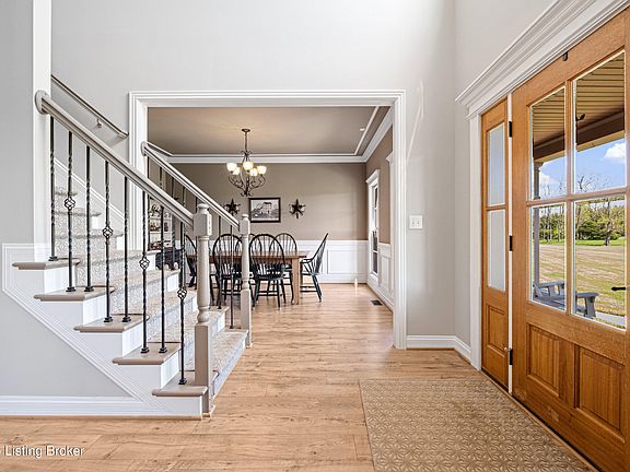 Hard to find pristine Oldham County mini farm! This property is absolutely turn key! The home has updated flooring and fresh paint. When you enter the front door you are greeted with a spacious dining room and office, there is 2 story family room with a fireplace. The kitchen has loads of cabinetry and a great center island! The family room has a door to a beautiful covered porch overlooking the rear paddock. The second floor has a HUGE primary suite overlooking the rear paddocks! The primary bath is spacious and has a large walk-in closet. There is a second bedroom suite on the second level as well as 2 bedrooms with a jack and Jill bath. The basement has a family room, exercise room, craft room, and a full bath. Outside you have two paddocks and an AWESOME barn! This barn is set up to accommodate a boat or RV on one side and the horses on the other! The horse side has 3 stalls, hay storage, a great heated and cooled tack room, and room for your tools! This barn was clearly designed by a horse person!! This really is a must see!!