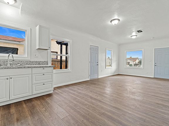 If you're looking for a starter home look no further! This corner lot 3 bed/2 bath home in East Bakersfield has seen many updates recently and is turn key ready! Newer updates include new flooring (laminate and carpet), windows, and paint. Bathroom and kitchen have had full rehabs! Open living spaces. Kitchen offers granite counters & new cabinets. Living room with recessed lighting. The full bathroom offers tile shower walls and laminate flooring. All bedrooms host step-in closets and plush carpet. Generous sized lot, with a covered front porch, space for RV parking, and detached 1 car garage. If you're looking to collect potential passive income, consider converting the garage into a separate quarters due to the size offered. This gem is within walking distance to East Bakersfield High, and within quick driving distance to various Medical Centers, Heritage Park, Virginia Avenue Community Park, and easy freeway access.