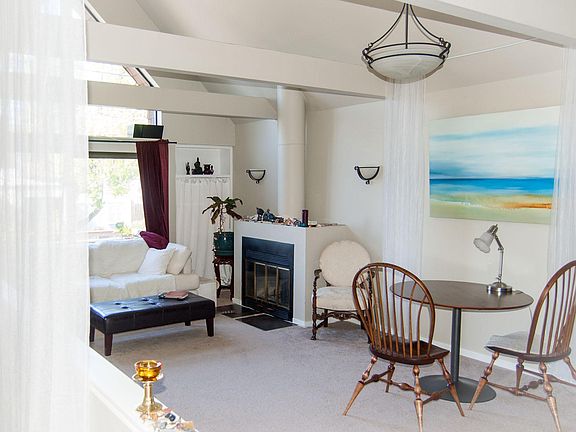 Large Walk-in closet. 2 other large closets. High ceilings. Spacious Living room. Decks, two, 2nd floor, bigger deck faces southwest. Fenced Garden belongs to unit. Quiet tree-lined street. Near UC Campus, BART. Oregon St. at Ellsworth. Address is in the listing. July 1 move-in date (or as early as 6/18). Berkeley: north of Ashby, east of Shattuck. First + Deposit (1.5*Rent) + Last. 2 Bedrooms, 2 Full Baths, 2 tub-showers. Two story end unit. Town-house style. Contemporary. Condo, not apartment. Living area: 1100 square feet. 102 m^2. One-year rental, Renewable. Private Garden, Garage & Driveway. Wall-to-wall carpet in living room and bedrooms. Dishwasher, Microwave, Gas Stove & Oven. Washer, Dryer. Fireplace. Central heating system, forced air. Cable hookup. Cats negotiable. Deposit (0.5*Rent). Dogs no. Unfurnished. Garbage included. Location information: Very Walkable, 88/100 Walkscore. Biker's Paradise 99/100. U.C. Berkeley: 16 minute walk to the RSF. Elmwood shops, restaurants: 10 min walk. Whole Foods, Berkeley Bowl, 6 min walks. Sylvia Mendez Elementary School K 5. Willard Middle School 6 8. Nearest restaurant, cafe, yoga studio 2 blocks. Claremont Canyon Preserve trailhead 1.2 miles. Ashby BART: 12 minute walk, 3 min drive. 24/580/80 Freeway Exits: 6 min drives. Downtown San Francisco: 20 min, no traffic. SF Downtown by BART train: 20 min. 1 year renewable. Garbage paid. Unfurnished. Cats negotiable with deposit.