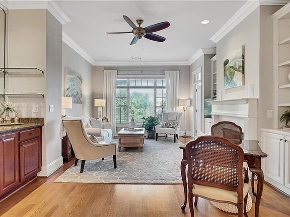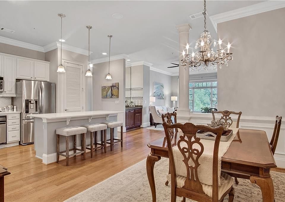 Hurry - there are only eight of these three bedroom units with ten foot ceilings in this sought after gated complex and they rarely come on the market! Bright open floorplan on the top floor with living and dining areas as well as an updated kitchen! Sunny living area has fireplace and opens to terrace with a wooded view. Room for holiday dinners in dining area and the kitchen renovations include a breakfast bar, white cabinets and new countertops. Master suite with luxurious spa bath, walk-in closet and door to terrace. Two additional bedrooms and a second full bath. Room for full size washer and dryere. Deeded covered parking space and a storage room come with this unit. Additional parking spot by back entrance. Complex has a pool and a clubhouse with an exercise room. There is also a spacious lawn area, grills, tables and garden plots. Super convenient location minutes to Brook Run Park and Pernoshal Park walking trails, Dunwoody and Perimeter area shopping and restaurants. Easy access to 285 and 400.