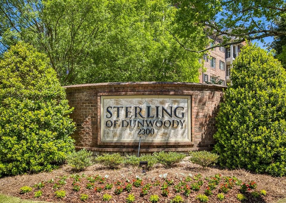 The one you've been waiting for is finally here! Welcome to The Sterling of Dunwoody, a well-known gated community in an incredible location that exudes elegance and craftsmanship. This rare 3-bedroom, spacious, corner unit is ready for you to call it home! Enter the foyer and follow the hardwood floors to the open concept floorplan, featuring a large dining area that flows into the well-appointed kitchen. Solid wood cabinets, stainless steel appliances, gas cooktop, and granite countertops make this kitchen a dream to work in! The living room offers a wet bar, plenty of space for seating, built in bookcases, and magnificent stone fireplace. Spacious master bedroom with private doors leading out to your large covered patio overlooking a quiet and secluded greenspace. Primary bathroom offers double sinks, shower, large tub, linen closet, and generous closet. Adjacent to the master you will find two additional bedrooms, each with large closets, as well as a guest bathroom and the laundry room. Updated lighting throughout with dimmers is a wonderful feature. This unit has TWO dedicated parking spots, spot #11 in the covered parking garage, and spot #324 in the parking lot. This unit also offers a separate storage room, #S2. Located only 3 doors down from the elevator, this home is easy to access for all your daily and entertainment needs. Amenities include beautiful Pool, Exercise Facility, Clubhouse, Grilling/Picnic area and Gardening plots. Walking distance to Brooke Run Park, and a short drive to access I-285, and all the shopping and dining that is available in both Dunwoody and nearby Sandy Springs. However, the best part of all will be your wonderful neighbors and community that will be available to you in this ideal neighborhood.