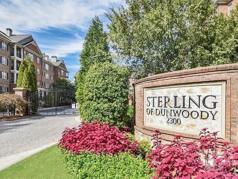 Real Living begins at Sterling Dunwoody! Must see wonderful END Unit with its own exterior entrance in the newest building of the property. Interior entry to unit from secured garage with parking space just steps away. Open floor plan welcomes you home; plan many evenings in the spacious great room with a cozy fireplace, built-in bookcases, 10 foot ceilings, 6" baseboards and crown molding, and wide plank hardwood floors. Prepare meals, like a chef, in your well designed kitchen with stainless steel appliances, gas stove/oven and granite counter and tile back splash.