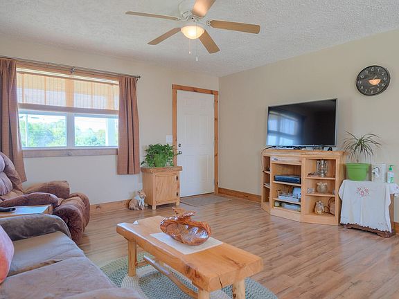This rural ranch home is completely move in ready, with many custom features and amazing views! Owner is a wood craftsman and his handiwork adds beautiful touches throughout the home! Large open yard in back with fire pit and greenhouse. Spacious deck on the back of the home. Large workshop with attached large one car garage with work area and storage. Kitchen w/ hickory cabinets, full pull out drawers-made just for this house! Island conveys. Open floor concept connects kitchen, dining and living room. Walk out to covered front porch for gorgeous views of area mountains. Three bedrooms down the hall; two with custom built in desks, book cases, and extra cabinet space. Master is bright with walk in closet. Full bath redone with custom oak cabinets and tile shower. Custom wood trim throughout the house. Wired for whole house generator. Workshop equipped with electricity, benches to convey. Quiet rural settings, close to area schools and shopping- a rare find for certain!!