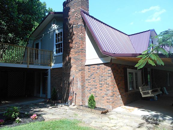 Large berm style home, brick & siding, replacement windows & entry doors, hardwood floors, great room, woodstove, built in shelves & wet bar, master suite with bath, living room, kitchen with new cabinets, total 4 bedrooms & 2 baths, utility room, covered front porch, 2 concrete patios, deck, 30 x 40 metal garage with heat & air in part, private setting on 35.5 acres. Bottom level 1800 sq.ft. & top level 1200 sq.ft. total 3000 sq.ft.