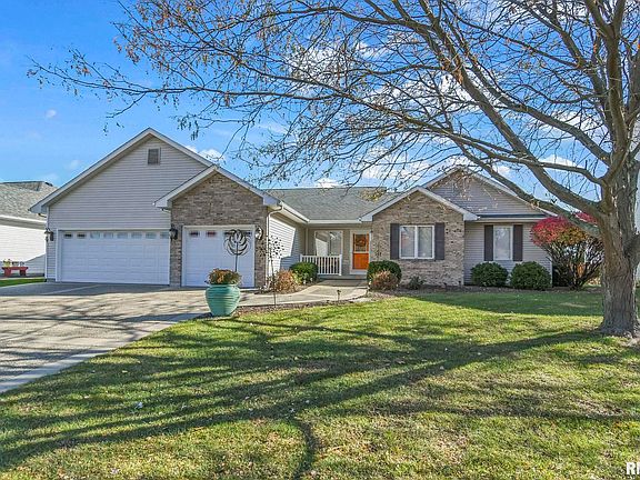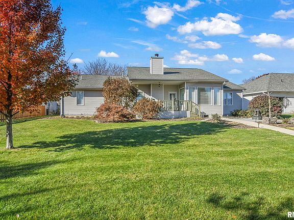 Sprawling ranch in popular Oak Park subdivision! The backyard of this home is all of the scenic views of Rotary Park! You don't often see a floor plan like this one. 4 generous bedrooms on the main level with a split bedroom concept, PLUS an office that could be used as a 5th BR. Primary bedroom has walk in closet and newly renovated bath in 2019 that includes a walk in tiled shower. The kitchen has an abundance of white cabinetry, a beautiful tiled backsplash, granite countertops and a wonderful eat in area that is fully surrounded by windows that over look the backyard, park setting and covered deck. The formal dining room has triple crown accents and makes entertaining easy. The fireplace is currently wood burning but owner can convert it back to gas, easily, buyers choice. Basement offers a fully finished family room, plumbing for a 3rd bath and loads of storage or unfinished area that could easily be finished. New flooring throughout most of home within the last 5 years, Roof approx 10 years old. Attached 3 car garage and beautiful exposed aggregate drive way. Convenient access to highway, shopping and all the restaurants. This home has been meticulously kept and is ready for its next owners.