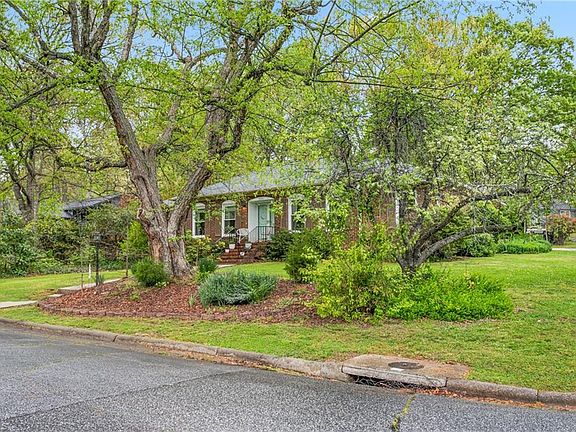 This elegant, ranch style home is tucked perfectly into the heart of Greensboro and conveniently located to shopping, dining and recreational areas. Built in 1972 with brick, vault style exterior front windows and vintage, double front door entry. This authentic styling has been complemented by built-in shelving and a brick fireplace in the den. Kitchen updated with tile backsplash, granite eat-in bar and gas range. Covered patio area flows into a double carport creating the perfect flex space for outdoor entertainment or everyday function. Featuring storm windows as well as a new roof (installed in 2023). This location provides Greenway access to downtown Greensboro, and Country Park as well as a short, 5-minute drive to the Greensboro Science Center. Also featuring underground utilities.