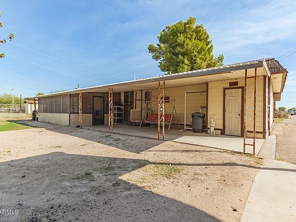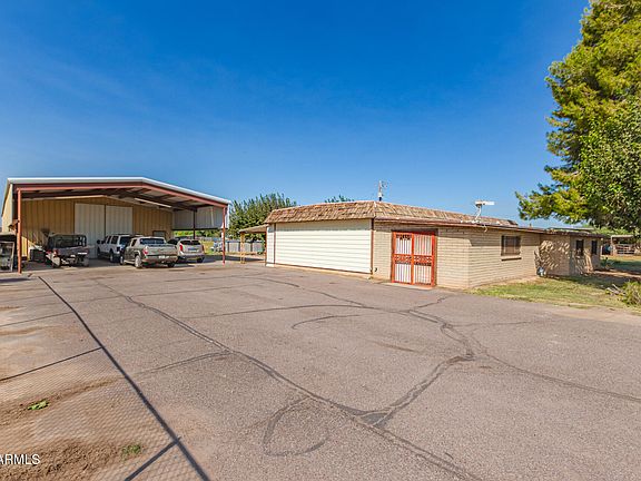 Exceptional opportunity to own 5.35 acres of prime irrigated land with no HOA in one of Arizona's fastest-growing communities. This versatile property offers endless potential with a spacious 3 bedroom, 2 1/2 bathroom modular home, a 4,000 sq. ft. shop (40' x 100'), and an attached 1,120 sq. ft. carport featuring RV doors approximately 12 feet wide and 13.5 feet tall. With 470 feet of highway frontage along Jackrabbit Trail, the location provides excellent exposure for business or agricultural ventures. The property includes multiple outbuildings, a private well, and one acre has a separate APN number and could be connected to city water. A perfect blend of country living, functionality, and commercial potential. Don't miss this opportunity!