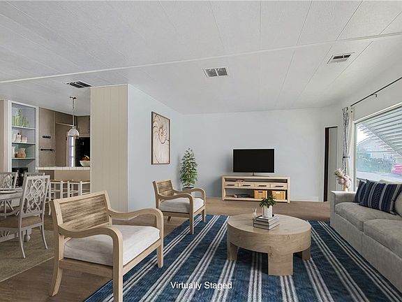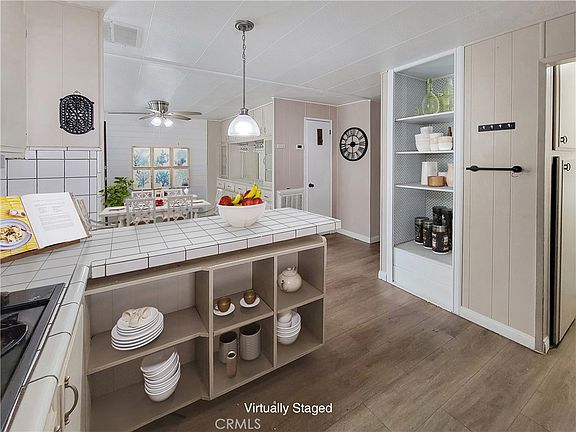 Come home to the beautiful all-ages community of Ponderosa! This lovingly cared for 3 bedroom, 2 bath mobile home has a wonderful open floor plan with large bedrooms. Plus two Outdoor Patio Spaces and a Tandem 2 car carport. The kitchen opens up to the dining room with a charming built in hutch for lots of storage. The home has been recently leveled, and upgraded with wood-style laminate flooring. The primary bedroom is quite spacious with an in suite bathroom and dual vanity sinks. The home has the bonus of an enclosed screened in porch with a private entrance from the exterior to the the 3 rd bedroom. Laundry is conveniently located inside the home, just off the kitchen. The washer, dryer and fridge all come with the home! The owner has improved the space with two outdoor patios perfect for gardening, BBQ, or a play area. Beautiful low maintenance plants grace the front of the home. A tandem covered carport easily fits 2 vehicles. The location is one of the best, offering a quick walk to the on site management office, swimming pool, jacuzzi, indoor gym, sport court and clubhouse that is available for gatherings and celebrations. The happiest place on earth aka Disneyland is a short distance away. Not to mention the Outlet of Orange Mall for incredible shopping, dining and movies. Easy freeway access makes commuting a breeze. The 5, 22 and 57 freeways are just up the road. The playful city of Anaheim has so much to offer! Make this home and community your dream come true. Disneyland, California Adventure, Anaheim Packing District, Garden Walk, Honda Center, and Angel Stadium await you!