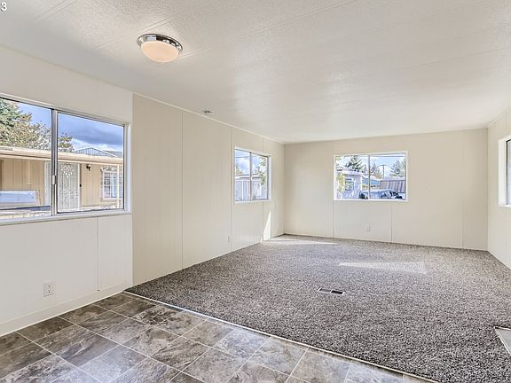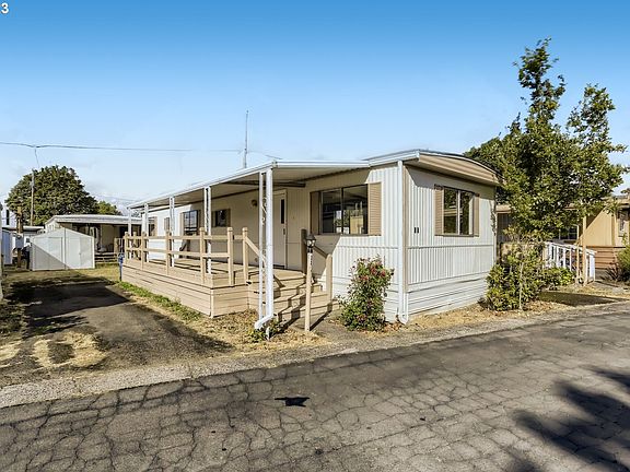 PRICE REDUCED! This 2 bedroom, 1 bath manufactured home is located in Central Trailer Park, an all-age community. Monthly space rent of $760/month includes garbage. Convenient parking in driveway with space for two cars. Two pets allowed up to 20lbs. Large covered front porch to enjoy year-round. New carpet + freshly painted interior. Open living room filled w/natural light opens to eating area + kitchen with pantry. Laundry area in hallway w/built-in cabinets. Storage shed offers space for additional storage. Secured mailbox area. Close to many amenities including schools, a variety of restaurants, Mt. Tabor Park and shopping. Park approval necessary for each adult.
