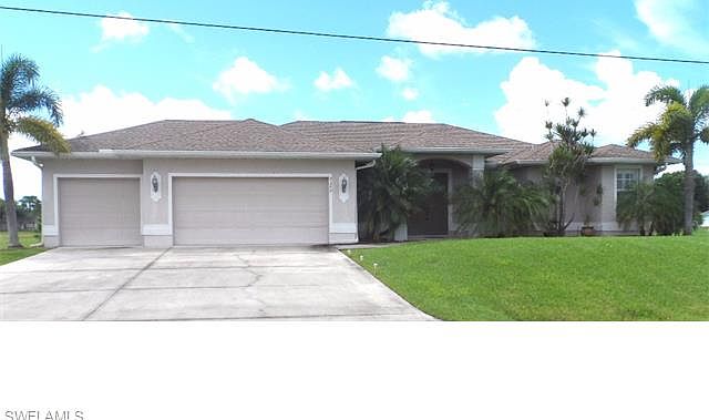 Location, location, location! Extremely popular southwest Cape Coral neighborhood. Beautiful area of newer homes and right between Sandoval and Heatherwood Lakes. This lovingly cared for home is in excellent condition and has a spacious and flowing floor plan. The southern exposure gives this home a very sunny disposition. Three bedrooms with a split bedroom floor plan plus a den or office. The master suite is the full length of the home and is very generous in size with sliders out to the pool and lanai. Master bath features dual sinks/vanities separate tub & shower. The kitchen lovely with wood raised panel cabinets, granite counters, large pantry, breakfast room off the kitchen, breakfast bar and all appliances. Additional features include inside laundry room, small dog run, security system, sprinkler system, shutters & oversized THREE car garage. City water & sewer just hooked up. Buyer to assume balance of fees and assessments. Custom shape swimming pool includes a water feature. Large under truss lanai area. Nice area of newer southwest Cape Coral homes. Easy access to Veterans Pkwy and Cape Coral Pkwy ... close to schools, shopping, dining, beaches & more! Call Today!