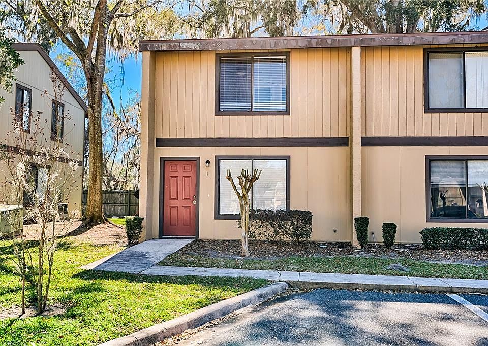 One or more photo(s) has been virtually staged. Move-in ready 2 bedroom/2.5 bathroom condo in Southfork Oaks! This well maintained end unit features fresh paint, new luxury vinyl plank flooring, new sliding glass doors to patio, updated bathrooms, and updated fixtures. The half bath is located on the first floor just off of the living room. The laundry closet features a washer and dryer, new bi-fold doors, and a shelf for storage. The kitchen is light and bright with new white cabinetry. Both bedrooms are upstairs and have en suite baths and ample closet storage. This home is within walking distance of Butler Plaza restaurants and shopping and is an easy commute to UF, Shands, and I-75! There are soccer fields, basketball courts, and a bus route near by!