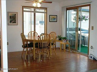 This is a top floor unit overlooking the courtyard with a BBQ. There are mountain views off the brand new Trex deck. Very well cared for 2-bedroom with private master bath. This bright, sunny unit is fully equipped. All appliances stay, including the washer/dryer. The heating system and water heater were replaced in 2011. Includes heated garage with storage. Hurry, it is move-in ready! Brokered And Advertised By: Alaska Real Estate Alliance Listing Agent: Darrell Friess