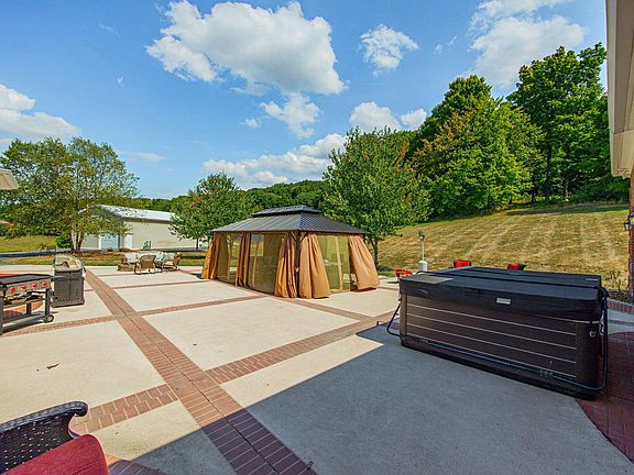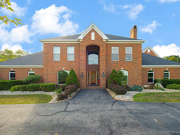 Experience luxury living in this expansive brick two-story home on a picturesque 10-acre lot. The custom design features a chef's kitchen with commercial-grade appliances, granite countertops, and abundant cabinetry. The main level offers a formal living room with a fireplace, a family room with built-in entertainment, a dining area with a wet bar, a private study, and a laundry room. The first-floor owner's suite includes dual closets, an XL shower, and direct access to a stunning 38x18 indoor pool with a full bath and kitchen. Upstairs, find four large bedrooms, including a Jack and Jill bath and ensuite. Enjoy a 30x50 outbuilding, a 3-car garage, a full basement, and a serene courtyard—all just 35 minutes from downtown Columbus and 15 minutes from Hocking Hills
