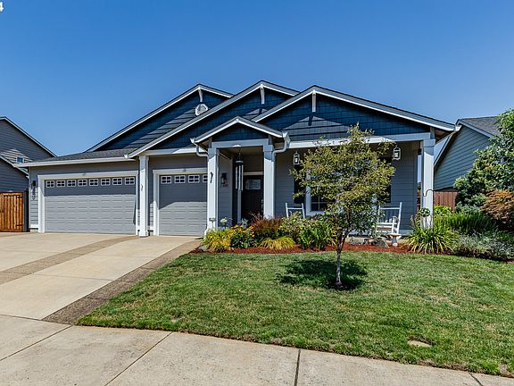 Stunning single level craftsman located in the desirable Reserve neighborhood in Junction City. Immaculately cared for, this home has so much to offer. 3 large bedrooms plus an equally spacious office, 2 living spaces, open kitchen and dining, new engineered hardwood floors, primary shower and exterior paint in 2018/19, new gas range in 2022, tons of natural light, high ceilings and gas fireplace. Enjoy a cup of coffee on your covered front porch or sit back and soak up the breathtaking garden and backyard. Paved RV parking with 220w outlet, 16x8 garden shed and 3 car garage are just a few more of this properties awesome features. Come fall in love with this beautiful home.