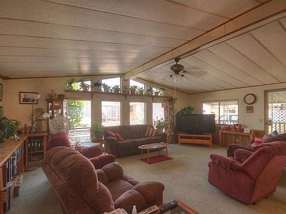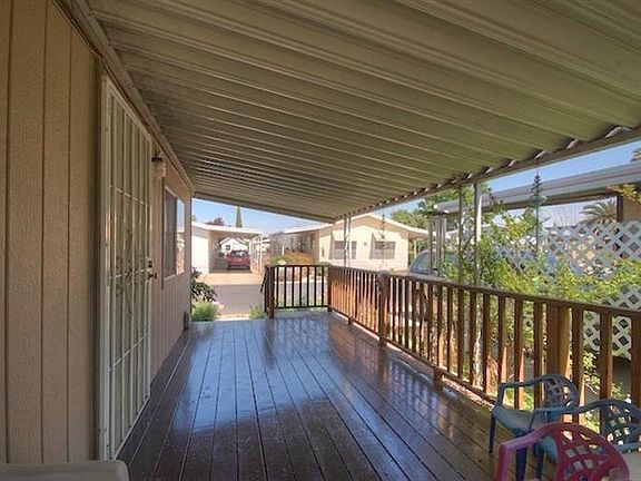 Price Reduced to Sell Fast! Fantastic price on this adorable 2 bedroom, 2 bath mobile home in a desirable mobile home park just waiting for a new family to love it. Huge living area with vaulted ceilings and large windows facing north that allow lots of natural light without the heat of the sun! Beautiful deck! Storage shed in the fenced backyard. Backyard also has an orange tree, peach tree and apricot tree that produce wonderful fruit. There are also 6 raised planting beds for your vegetable garden. Seller will leave washer/dryer and fridge for new buyer. Colonial is an over 55 or disabled gated community that boasts a swimming pool and many recreational opportunities. Don't miss out on this amazing deal!