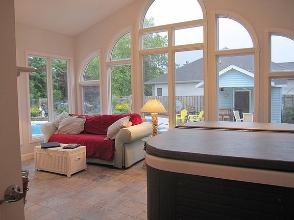 Impressive move-in ready, luxury-filled home!! Outside features heated in-ground pool w/new liner & beautiful, lighted waterfall, pool house, extensive theme-oriented landscaping, plus inviting front porch. Inside features elegant wood flooring, vaulted ceilings decorative pillars, double sided fireplace, all season sunroom w/4 person hot tub, all new kitchen appliances, two bedrooms w/ new carpet, the basement is finished w/beautiful built in wine cabinetry, wine caves, wet bar and family room