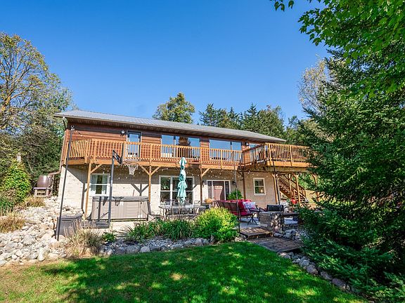 Designed for those who love nature and rustic charm, the home provides countless ways to soak up the peaceful surroundings: enjoy morning coffee on the wraparound deck, host summer evenings on the spacious patio, gather around the pond-side fire pit, or explore your own land for hunting and outdoor adventure.