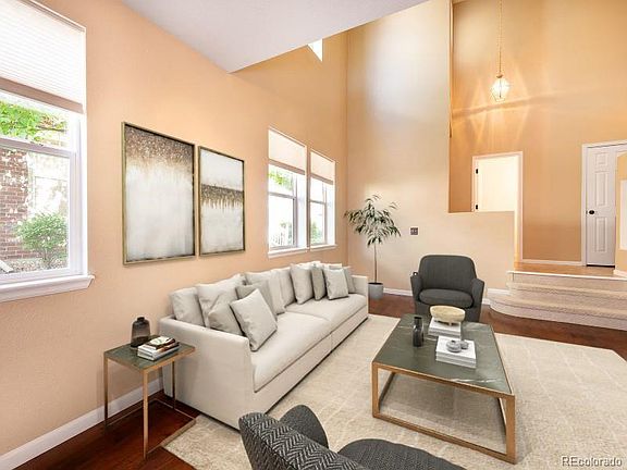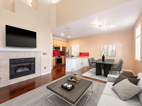 Introducing a 2-story condo/townhouse nestled in the desirable Saddle Rock community, offering a blend of comfort and convenience for those seeking a prime location in Aurora. The open entry and bright great room have vaulted ceilings making one feel a sense of spaciousness. The main level features a charming great room with wood floors and a cozy fireplace, perfect for unwinding on chilly winter evenings. Seamlessly connected is the kitchen, boasting stainless steel appliances, granite countertops, a pantry, ample bar seating, and a generously sized dining area. Completing this level is a convenient powder room, an essential addition to any main floor living space. The light-filled upper level features the Primary bedroom offering a peaceful retreat with a spacious walk-in closet and an architectural hallway leading to the primary 5-piece bathroom. In addition to the Primary bedroom, the secondary bedroom, hallway full bathroom, and a versatile loft, perfect for a home office, playroom, or a flex space make this portion of the upper level fantastic. The loft also includes access to the balcony, so slip away to relax after a long day. Don't forget the upper-level laundry room that makes putting clean clothing away a breeze. The 2 car-attached garage provides easy access to the kitchen and makes grocery runs effortless. Step outside and discover a large community pool and clubhouse. Many hot summer days can be spent here cooling off. This unit combines a thoughtful design, desirable amenities, and a great location with Cherry Creek Schools, Southlands Mall, easy access to E 470 and the airport. You won't want to miss your chance to call this residence home.