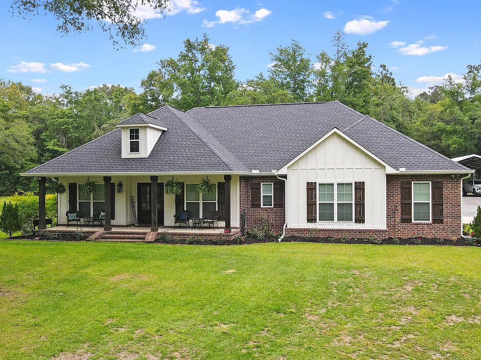 Beautiful 4bed/ 3bath brick on situated on 2+/- acres in loxley. Home is offers a open floor plan with granite countertops and wood floors through. The primary bedroom offers a large walk-in closet and double vanity with the laundry room right off the bedroom. There is a larger attached carport with an additional 24x36 pole barn with 100amp service and water that is perfect for your RV storage or closed in for a shop. On property there are additional storage sheds with power and water and a large chicken coop. With this property you have the country feel but within a short distance to Fairhope and Daphne.