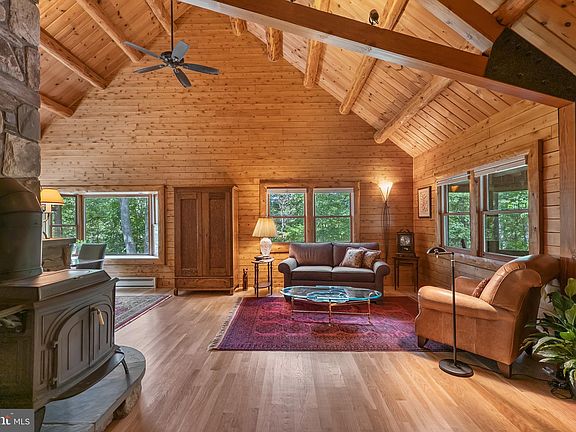 This property is a little slice of heaven. Your own oasis of privacy. You would never know that you are only 5 minutes away from I-270 and 15 minutes away from the Capital Beltway. There are 7.3 acres of mostly treed land with about half an acre of cleared land around the home. Among the trees are 8 fully established American chestnut trees and a professionally landscaped design. This custom-built log home is constructed of white cedar logs making it naturally resistant to insects without any chemicals. Step inside to the gleaming white oak floors throughout the majority of the first floor. Observe the centrally located wood stove backed by stones that was quarried from the Potomac that reaches up to the peak of the cathedral ceiling with lovely uplighting. The owner's suite is located on the second floor with its own private balcony, a walk-in closet and bath. In addition to the living room, dining room and kitchen with an abundance of storage in the custom-made cabinetry, there are also 2 good sized bedrooms on the main level. The lower level is partially finished with a great family room. There is also a walk-out, tons of storage and plenty of room for hobbies like wood working. This home has a very large, screened porch, a balcony and a large freshly stained deck with stairs to the yard. You will never want to leave! And for you work from home individuals, high speed internet is available. There is a permanent creek located in the woods. The seller has marked the corners of the lot for you and there is a plat in the document section of the mls. There are stunning views from every window so you can enjoy the abundant perennials that start blooming in January with the winter blooming Jasmine and proceed through spring and summer, then finish with the wonderful colors of fall. Unique properties like this rarely become available. Don't miss your chance to own private, wooded sanctuary where joy, happiness and bliss abound.