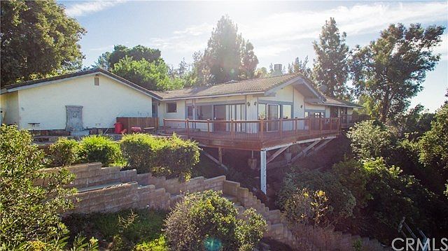 Very charming & cozy single story home in the exclusive & prestigious 'The Country Estates'. Affording utmost privacy in a highly desirable & private location below street level on a sweeping lot, this classic craftsman style home boasts unparalleled 180 degree panoramic views of stunning city lights & mtns. Fully immerse in the serene forestial environment complete w/an outdoor terrace, an entertaining slated stone paved fire pit area, 2 accessible horse stables down the hill, & spacious 3 car garage completes this home. With a huge frontage, cozy & comforting interiors, splendid features of this home include incredible views frm every angle, a bright ambiance, spacious living rm & family rm w/stacked stone fireplaces, charming kitchen complete w/granite counters, recessed lighting, built in apps (oven, microwave, gas cook top, refrigerator, trash comp., dishwasher, lrg sink, etc.). Private quarters offer 4bedrms & 3 full bathrms. The main master features a spacious walk in closet, Jacuzzi tub, & patio doors to the viewing terrace. Comforting appeal that incorporates natural elements & a simple interior w/exposed beam ceilings & wood mouldings. Great potential & needs TLC, fantastic location! Sold in AS-IS condition.