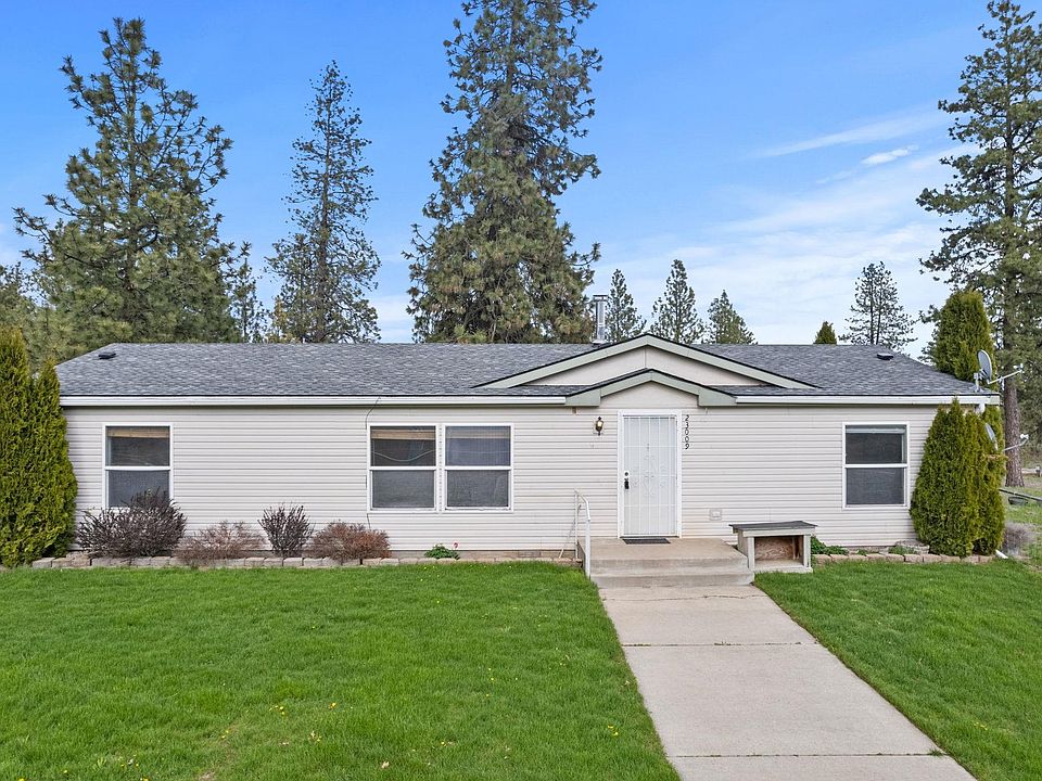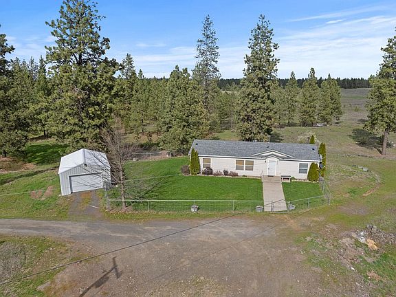 Your opportunity to own a beautiful slice of almost 10 acres with 2002 manufactured home and shop/garage set back in the lot! The home features 3 bedrooms including a primary suite with shower and soaking tub. Additional 2 bedrooms and bathroom located on other side of home. Open living room with vaulted ceilings leads to kitchen with eating bar, pantry and lots of cabinet space. Brand new flooring throughout! Dining nook located directly off of kitchen with wood burning stove! Shop/garage equipped with generator hook-up and lots of additional storage space. Enjoy evening sunsets from your own piece of tranquility!